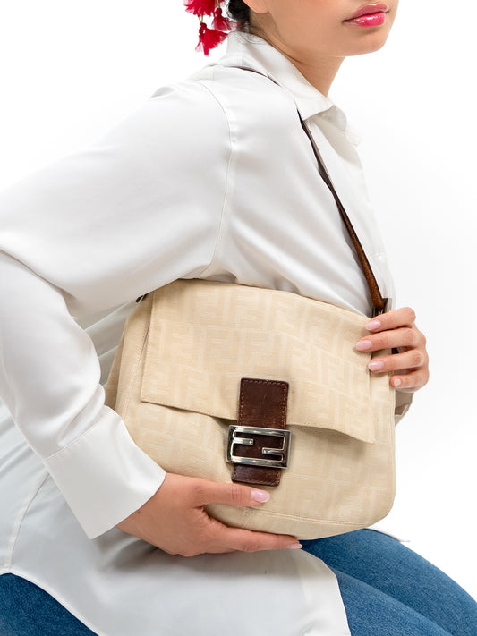 FENDI beige zucca mamma baguette shoulder bag